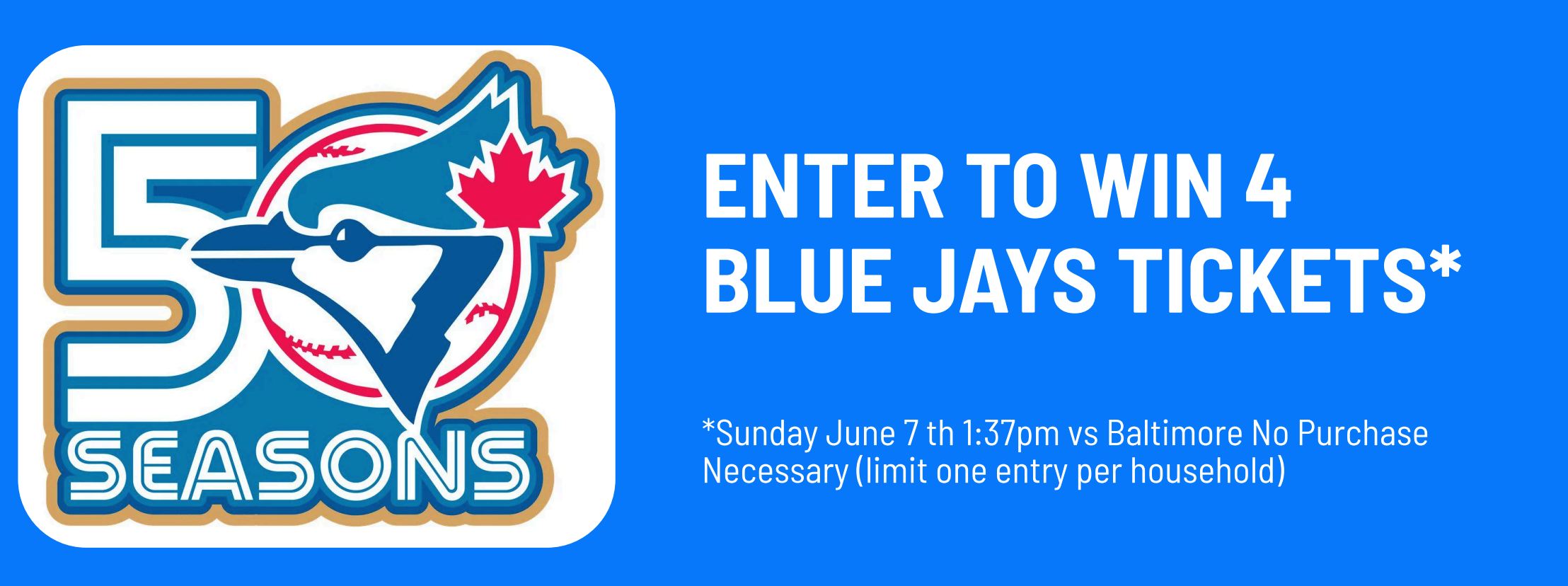 Fill out the form below to enter our Blue Jays ticket draw. Enter for a chance to win 4 tickets to see the Toronto Blue Jays take on the Baltimore Orioles on Sunday, June 7th at 1:37 PM. All fields are required.